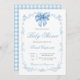 Blue Gingham and Bow Baby Shower Boy Invitation