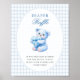 Blue Gingham Bow Heart Teddy Bear Baby Shower Poster