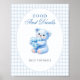 Blue Gingham Bow Heart Teddy Bear Baby Shower Poster
