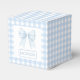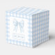 Explore adorable baby boy shower or birthday boy gift favour boxes featuring a charming watercolor blue gingham bow ribbon, personalised with the name. Enhance the celebration with these cute and customisable favour boxes. Perfect for baby showers, birthdays, and more!