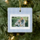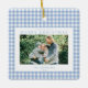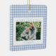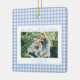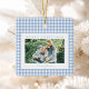 Blue Gingham Christmas Photo Ceramic Ornament