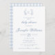 Experience timeless sophistication with this elegant vintage-themed baby boy shower invitation, featuring a charming baby blue gingham pattern. Perfect for elegant baby boy celebrations.