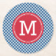 Blue Gingham Country Chic Personalise Monogram Round Paper Coaster