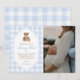 Blue Gingham Elegant Teddy Bear Baby Shower Photo Thank You Card