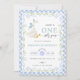 Blue Gingham Floral One Silly Goose 1st Birthday Invitation