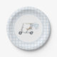 Add a finishing touch to your baby shower decor with these blue gingham golf themed paper plates.