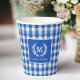 Custom Monogram Paper Cups Blue Gingham Pattern Design - 6 colours.