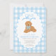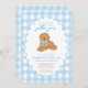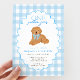 Blue Gingham One Golden Year 1st Birthday Puppy Invitation