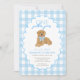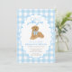Blue Gingham One Golden Year 1st Birthday Puppy Invitation