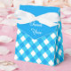 Cute blue gingham pattern on favor boxes with optional "Thank you" text.