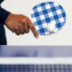 Blue gingham pattern ping pong paddle