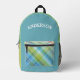 Blue Gingham Plaid Pattern Personalised Name, blue and green watercolor gingham pattern printed backpack with optional personalisation.and space to add your kid's name. The perfect gift for any kids boys or girls, perfect for your child to take to school or preschool, sports or work.l! Customise the text field for a great bag for back-to-school
