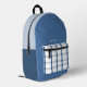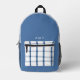 Blue Gingham Plaid Personalised Name Initials Printed Backpack