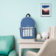 Playfully painted blue gingham plaid stripes pattern printed backpack with optional personalisation.