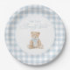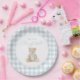 Blue Gingham Teddy Bear Baby Shower Paper Plate