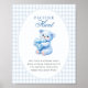 Blue Gingham Teddy Bear Neutral Baby Shower Poster