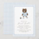 Blue Gingham Teddy Bear Soccer First Kick Invitation