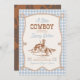 Saddle up for a sweet celebration! This gingham cowboy baby shower invite features western flair with a charming twist—easy to edit, download, and print or share digitally.