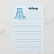 Sweet monogrammed stationery makes a great gift for young boys. The letter A sits with a smiling alligator on blue gingham checked prints.