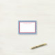 This blue gingham Post-it® Notes pad features a blue gingham pattern with a red border and a white centre.