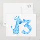 Blue Giraffe 3rd Birthday Postcard