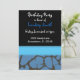 A black background accented by a border of blue giraffe fur pattern along the bottom. Customise with all of your birthday information as desired.