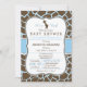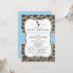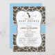 It's a Boy! Cute, elegant blue and brown giraffe baby shower invite on baby blue and brown giraffe animal print pattern with vintage formal look. Great for jungle, zoo animal theme baby showers. Retro bracket shape invitation.