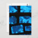 A close up of blue glass chunks with dark mortar between them from a stained glass window
