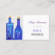 Blue Glass Corked Lined Up Bottles Business Card (Dark Deep Royal Blue / Purple Tint, Cream / Wooden Colour Combination) for an Artist / Craft Gallery Owner / Glass Work Specialist / Wine Shop Representative / DIY Shop Owner / Crafts Market Specialist / Decor Enthusiast / Other Professionals. Personalised Business Cards to add to your individual unique style and make your business stand out. Customise it to suit your needs and to bring necessary edge! A great gift / present idea for all who start a new job / company, love natural materials, positive warm vibes, interesting visual solutions and custom design unique items. Glass, lines and geometry, organic theme and feel, simplicity, clean lines, shapes / forms, water, drink, restaurant, bar etc.