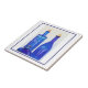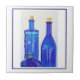 Various Shapes Sizes Blue Glass Corked Lined Up Bottles (Dark Deep Royal Blue / Purple Tint, Cream / Wooden Colour Combination) Ceramic Decorative Tile / Tiles to add to your decor collection. A great gift / present idea for all who love natural materials, positive warm vibes, interesting visual solutions and custom design unique items. Glass, lines and geometry, organic theme and feel, simplicity, clean lines, shapes / forms, water, drink, restaurant, bar etc.