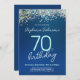 Blue Glitter 70th Birthday Party Invitation. Celebrate in style with our Birthday Invitation design, a perfect blend of modern glamour and timeless elegance. The deep blue hue sets the sophisticated tone, while the addition of glitter accents adds a touch of dazzling flair, making this milestone celebration truly shine. The sleek and contemporary design reflects the celebrant's vibrant personality, capturing the essence of reaching the fabulous age of 50. Join us for an evening of glamour and joy as we toast to five decades of fabulous memories and countless more to come!