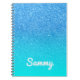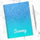 Blue Glitter and Aqua Ombre Personalized Notebook