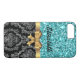Blue GLITTER BLACK DAMASK GOLDEN BOW MONOGRAM Case-Mate iPhone Case