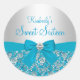 Sweet Sixteen sticker. Blue glitter & Bow. Exclusive Zazzle. Customise with your own details. PLEASE NOTE all flat images! They Do NOT have real Bows, Glitter or Jewels!!