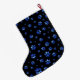 Blue glitter dog paw pattern Monogram Large Christmas Stocking