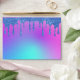 Blue glitter drip wedding invitation envelope with cool fluorescent, neon pink, purple and light blue background. Personalise it by adding your name and return address.