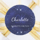 A classic navy blue background, the blue colour is uneven. Decorated with faux glitter dust. Personalise and add your first name, monogram initials and full name.