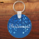 This is Blue glitter personalised bridesmaid keychain. Faux gold glitter Elegant logo design with monogrammed letter initials. It is cute vintage gift idea for classy bride, flower girls, maid of honour and bridesmaids at fancy wedding or bridal shower.