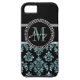 Blue Glitter Printed, Black Damask Personalised Case-Mate iPhone Case