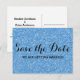 Chic and elegant Glitter Save the Date Postcard with a blue glitter look digital art background. Easy to customise with your wedding details. For more customisation options, click on the Customise It button. //NOT REAL GLITTER - DIGITAL ART PRINTED FLAT IMAGE//