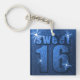Blue Glitter Sweet 16 Birthday Keychain