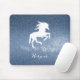 Add an elegant touch to your computer workspace with a Blue Glitter Unicorn Personalised Mouse pad. Mouse pad design features a unicorn walking a star trail against a glitter background. Additional items available with this design as well.