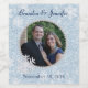 Glitzy ice blue glitter looking wedding full size wine labels, with custom photo slot, and graphics of snowflakes and diamonds. Personalise with your photograph and text for your special day.