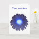 This pretty greeting card features a photograph of a marigold flower that has been manipulated to create a beautiful flower with a glowing bright blue centre and delicately coloured petals that darken to become almost black at their edges. There is blue customisable text on the front of the card, making it easy to personalise this card for any occasion and anyone of your choice.