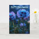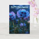 Eerie blue glowing skull flowers under a mysterious light. Add your message inside in the same creepy font.