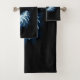 Blue Glowing Angel Wings on black background Bath Towel Set