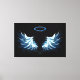 Blue Glowing Angel Wings on black background Canvas Print