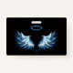 Blue Glowing Angel Wings on black background ID Badge