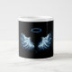 Blue Glowing Angel Wings on black background Large Coffee Mug
