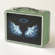 Blue Glowing Angel Wings on black background Metal Lunch Box